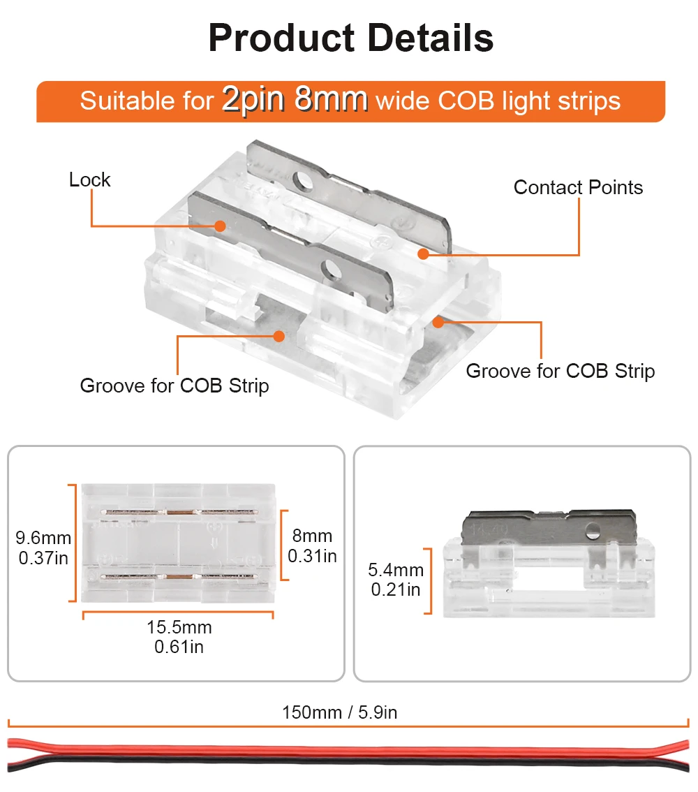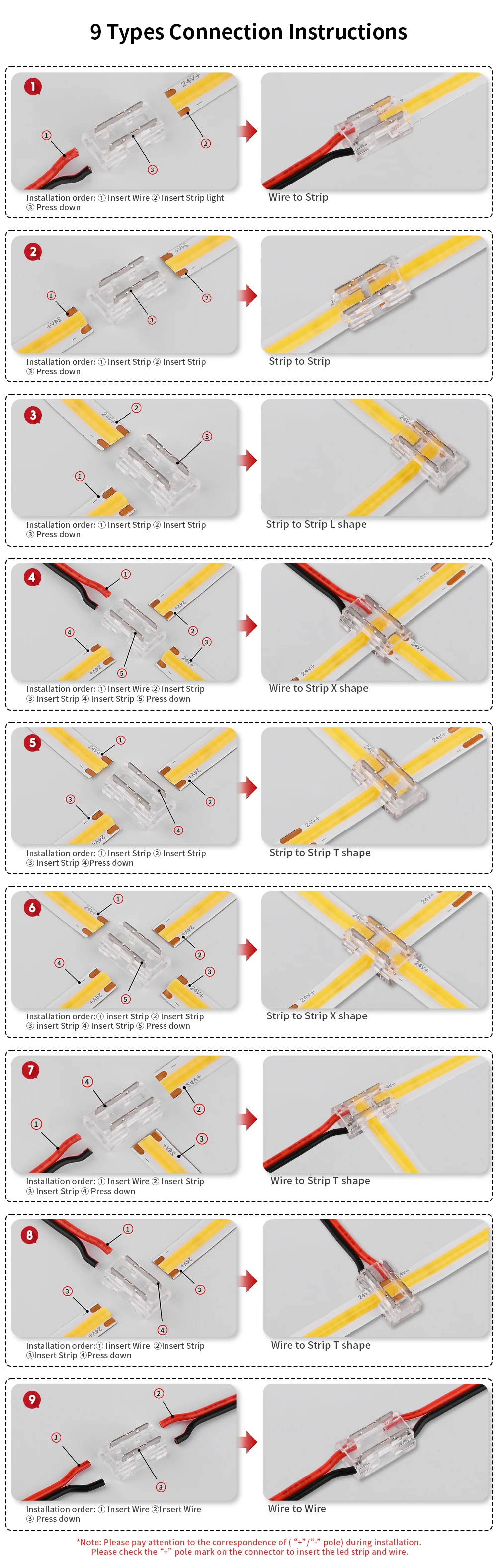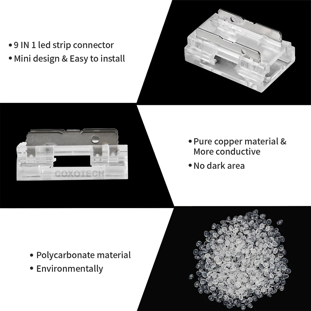 ITEM NAME: 9-In-1 DIY Solderless LED Strip Connector(strip-to-strip, strip-to-wire, wire-to-wire, strip-to-strip with mid wire)